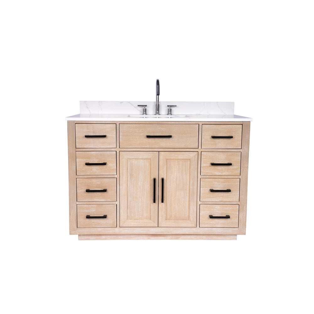 Mulholland 48" inch Single Sink Milk Oak Vanity with Quartz Top