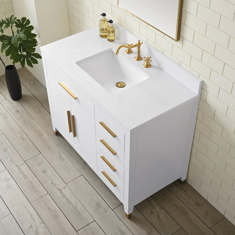Springs 42" Inch White Single Sink Vanity with Quartz Top