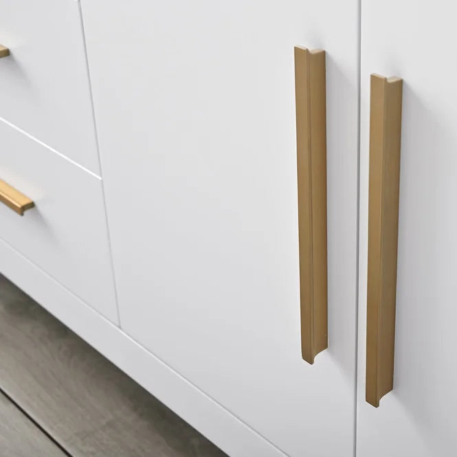 • Zinc Alloy pull and knobs with Satin Brass finish