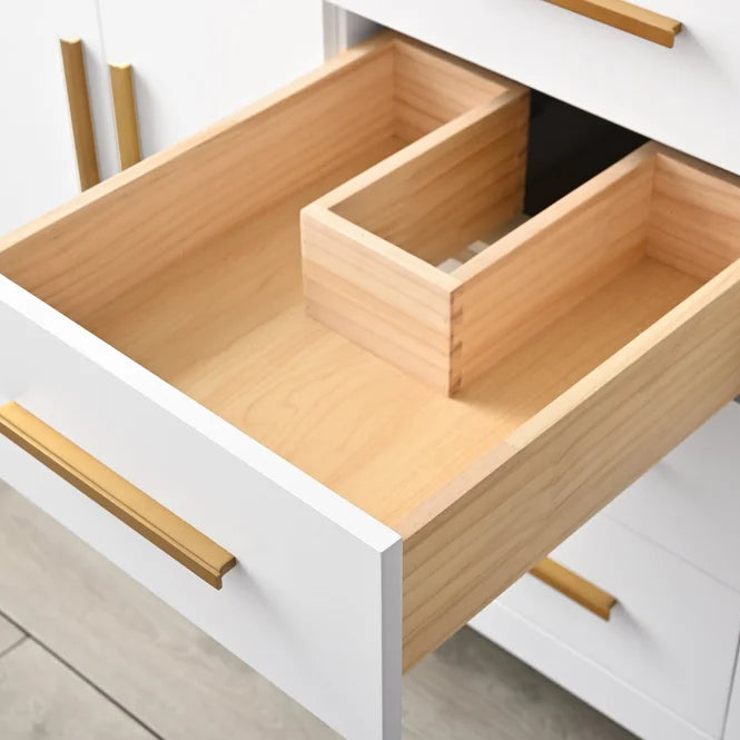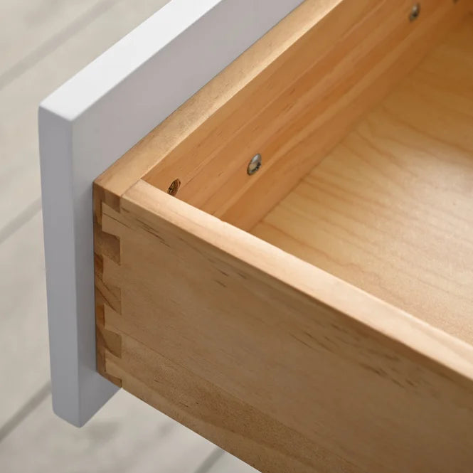 • 2 flip-out wooden, 2 regular, and 1 combined dovetail pine drawer
